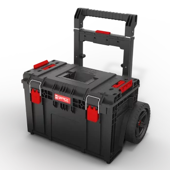 Produkty z tej serii wyposażone są w teleskopową rączkę oraz duże, 9-calowe gumowe koła, które ułatwiają transport w różnych warunkach. Dzięki wysokiej klasie odporności na wodę (IP66) oraz pył (IP54), skrzynie świetnie sprawdzają się w intensywnym użytkowaniu zarówno w warsztacie, jak i na placu budowy.